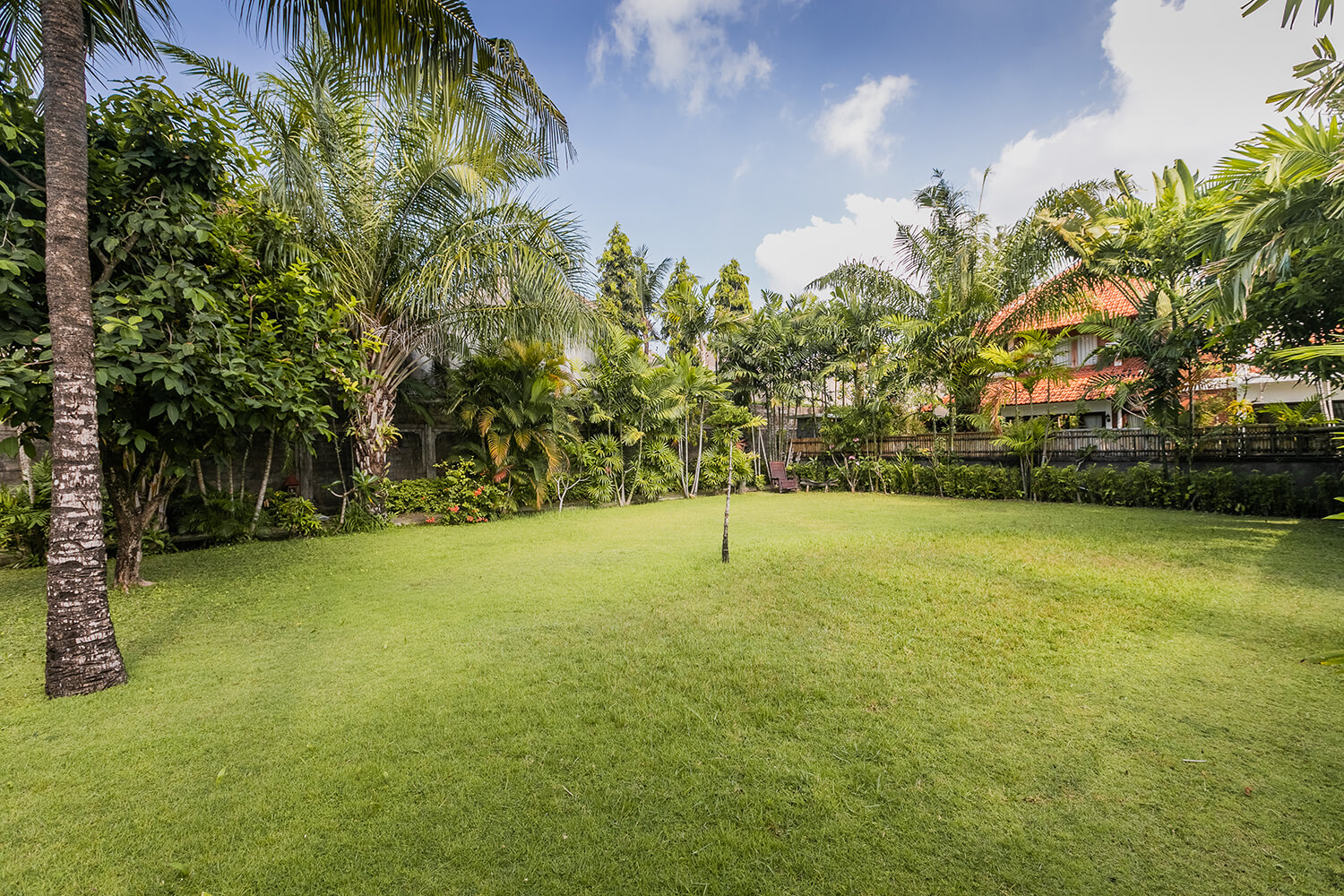 🔔 Walled tropical garden planted with Frangipani, Palms, Mango and Papaya trees, beautifully illuminated at night and manicured every week by our gardener