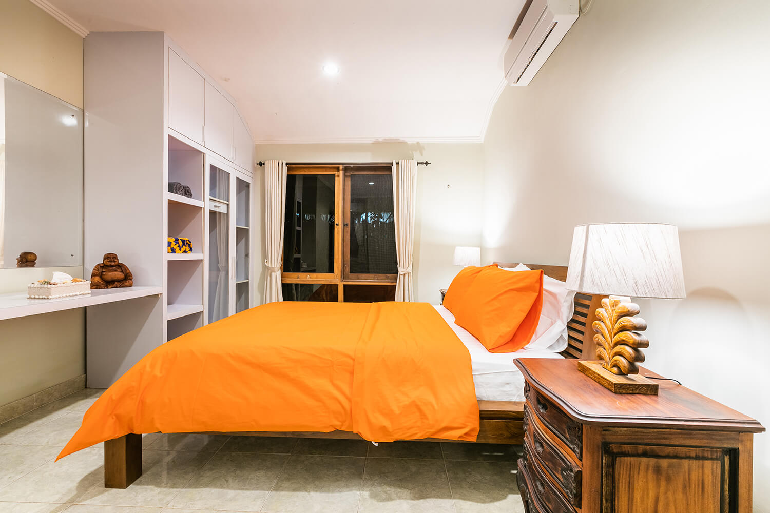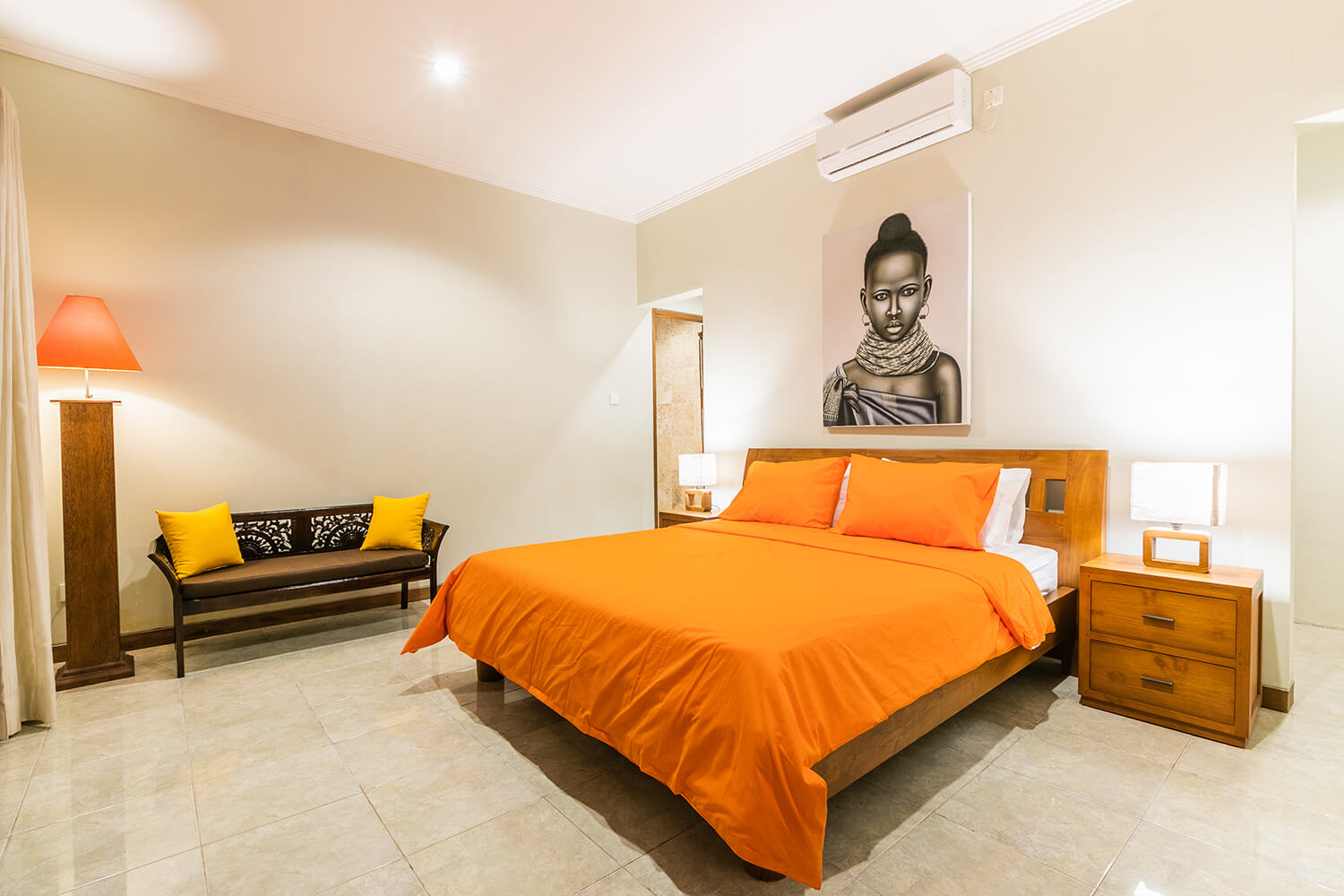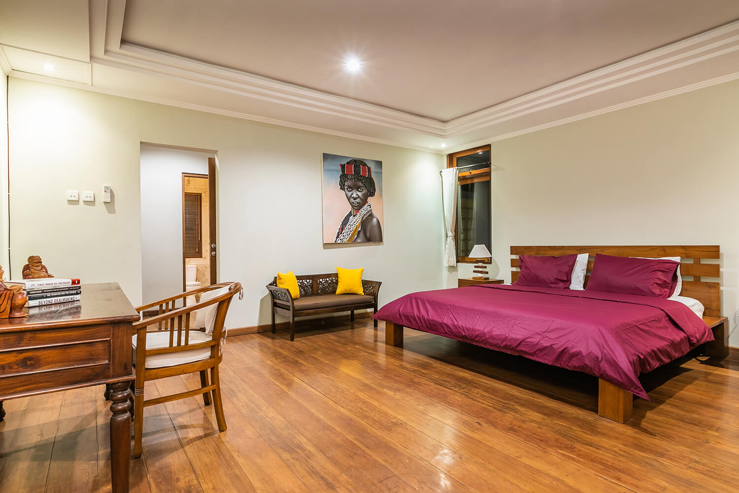 🔔 Master bedroom with a king size teak wood bed
